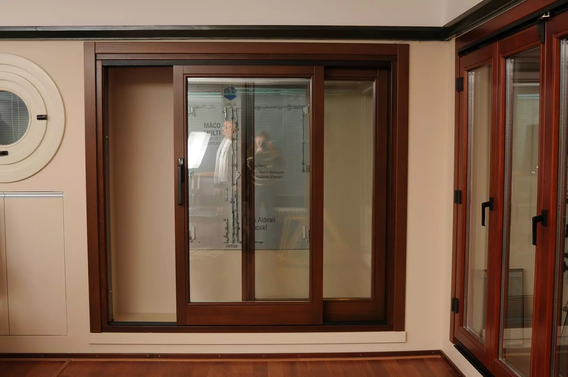 Mekanlarda yer kayıplarını en aza indiren, ikili ve üçlü kombinasyonlarda uygulanan yatay kaldırmalı sürme ahşap pencere sistemi ayrıca ferah bir görüş açısı vermektedir.